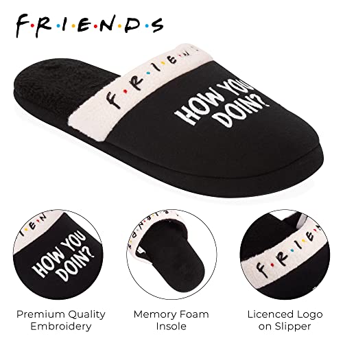 Pantofole ufficiali in memory foam, unisex, da donna, da uomo e da donna, scivolano sulle calde soffici casette per interni ed esterni, con licenza di amici TV show, Nero e bianco, 40-42 EU