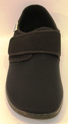 Pantofola Uomo in tessuto nel colore Nero. Chiusura con strappo. All'interno soletto e fodera in tessuto. Suola in gomma con zeppa di cm 3. COD.0941