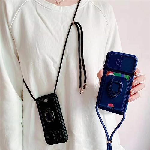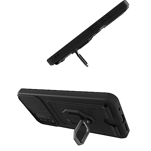 PANXIYUE Cover Xiaomi Redmi 9T / Poco M3, Coperchio Scorrevole Della Fotocamera+Supporto ad Anello a 360 Gradi, Antiurto in Silicone Antiurto e Custodia per Cordino -Nero