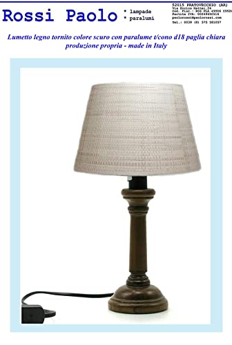 Paolo Rossi Lampada lumetto abat Jour da Comodino in Legno tornito - Produzione propria - Made in Italy (con Paralume Paglia Chiara)