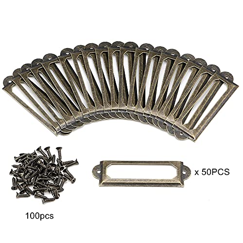 Paor, cornice per targhetta per librerie, scaffali, cassettiere, 60 x 17 mm, in ferro color bronzo antico, 50 pezzi