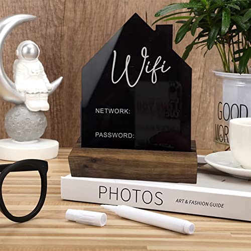 PAPABA WiFi Segno Ornamento Segno Password WiFi Acrilico con Base in Legno Stile Lavagna Decorativa Nero