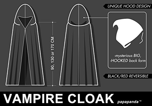 Papapanda Vampiro Mantello Cappuccio Nero Rosso per Bambini o Aulti Halloween Dracula Cosplay (170cm)