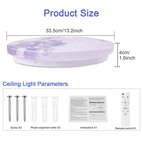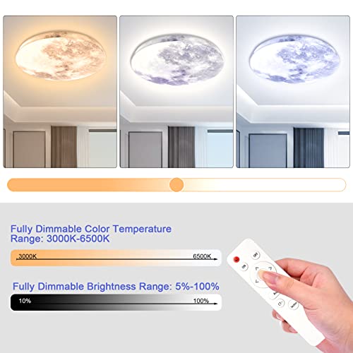 Papasbox Luna Lampada Da Soffitto Camera Dei Bambini | Plafoniera Led 36W Dimmerabile Con Telecomando | Ø33Cm 3600Lm 3000-6500K IP40 Impermeabile Per Parete Camera Da Letto Cucina