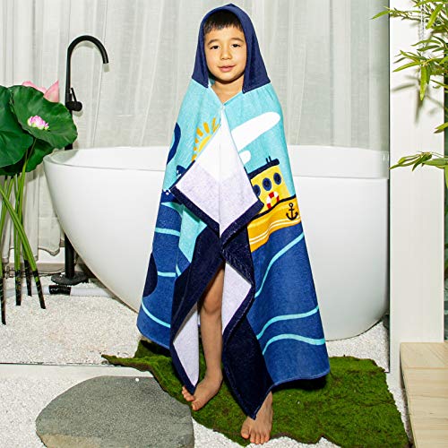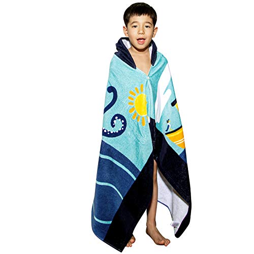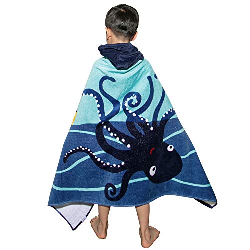 Papasgix Asciugamano con Cappuccio in Cotone per Bambini Asciugamano Poncho da Bambino per Spiaggia, Bambino in Microfibra, Cartone Animato Accappatoio Asciugamano ad Asciugatura Rapida(Navy/Polpo)