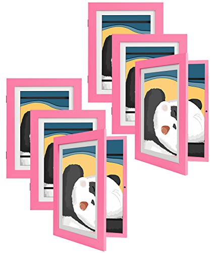 Papasgix 6 Pezzi Cornici per Disegni per Bambini con Cinghia Fissa, Cornici Artistiche Apribili In Acrilico A4 per Bambini con Apertura Frontale per Scuola Casa Ufficio(Rosa Rossa,32x24cm)