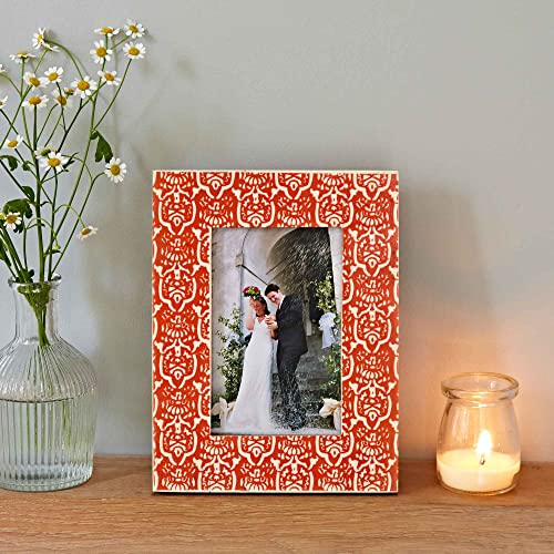 Paper High Cornice portafoto in legno di mango e resina | Cornice in legno sostenibile | Cornice intagliata a mano arancione | Commercio equo e solidale e fatto a mano per uomini e donne (si adatta a