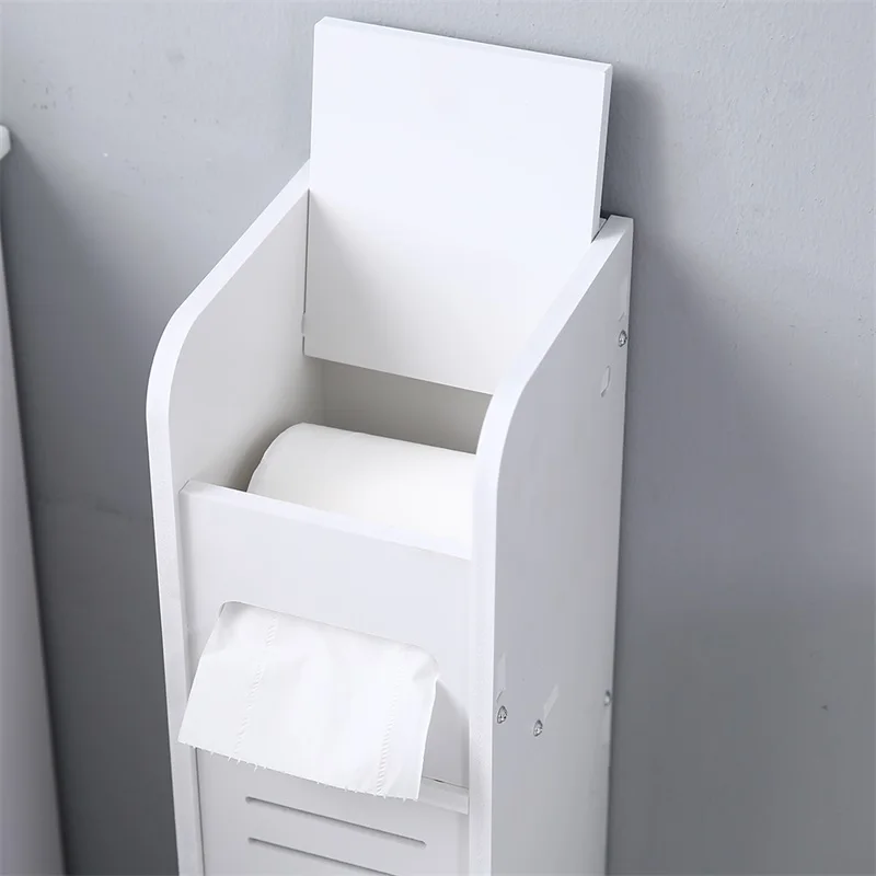 Paper Towel Storage Narrow Cabinet Pvc 15.5x17x80cm Height Waterproof Bathroom Furniture vanity Stand Storage Rack Beside Toilet