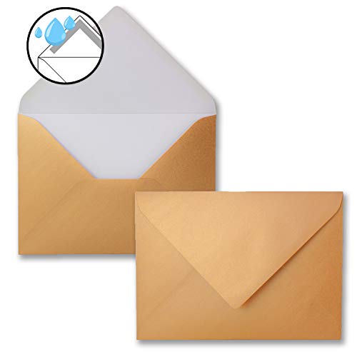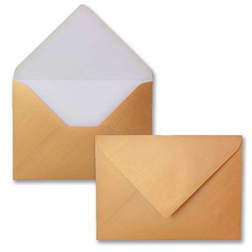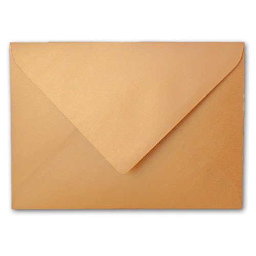 Colore delle buste di carta: rame metallizzato, lucido. Grammatura: 90 g/m². Formato: DIN B6, 125 x 176 mm;