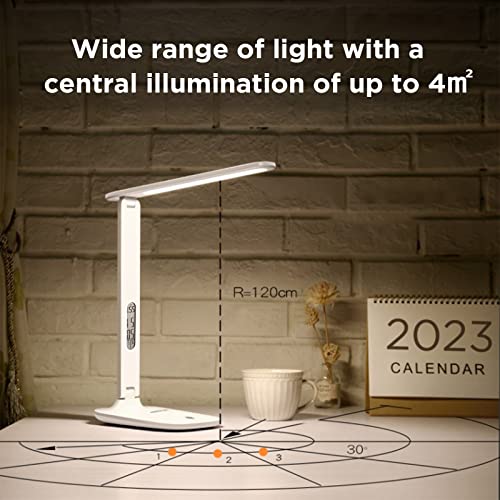 Paperang LED Lampada da Scrivania con Display LCD con Ora, Data e Temperatura, 3 Modalità di Illuminazione con Luminosità Regolabile, Luce da Lettura per la Protezione Degli Occhi con Controllo Touch