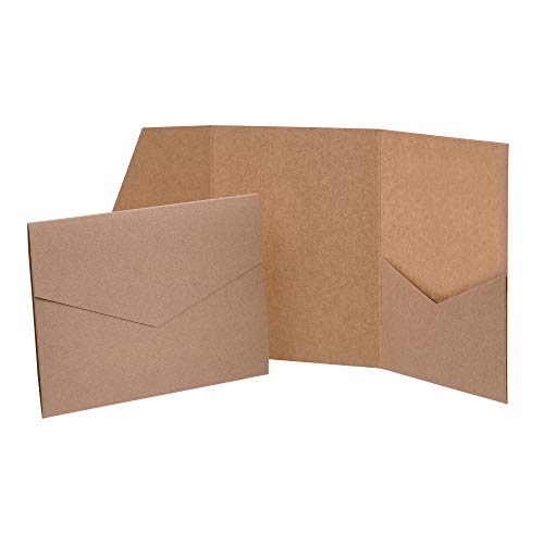 Papermane - Biglietto B6/C6 Pocketfold, invito al matrimonio, biglietti bianchi, carta kraft (marrone, con buste, 25)