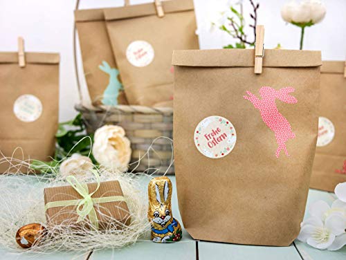 Papierdrachen 12 sacchetti per regali per la Pasqua fai da te e da riempire a piacere - Cestino pasquale fai da te con 12 sacchetti di carta e adesivi con coniglietto pasquale - Design 4