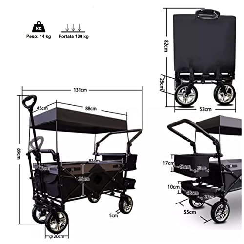 PAPILIOSHOP NITRO Carrello carretto a mano pieghevole passeggino per trasporto bambini spesa (Rosso)