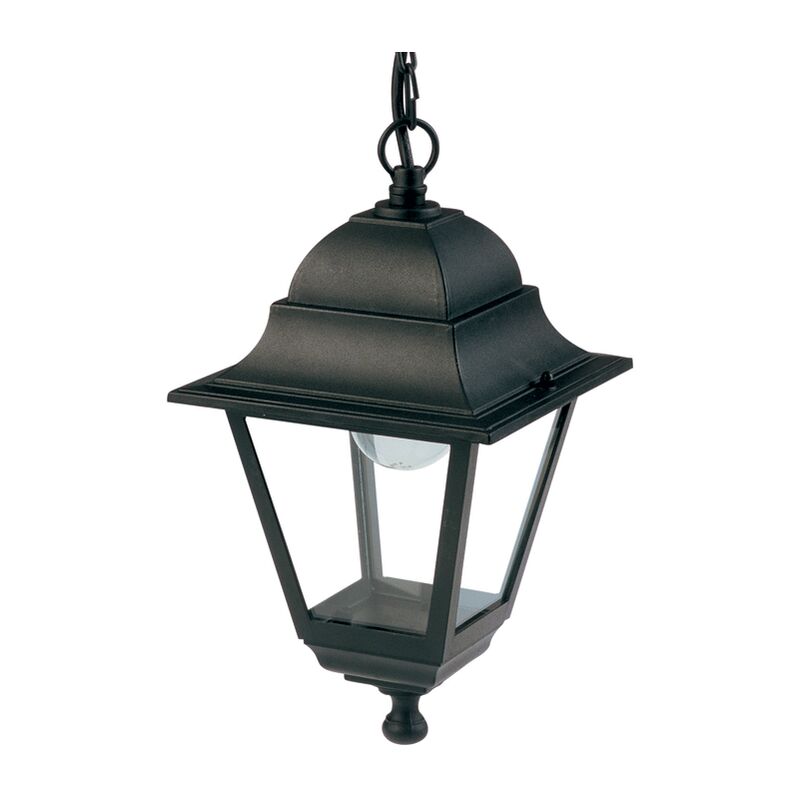 LANTERNA DA GIARDINO "CHARME SOSPESA" PAPILLON Lanterna per esterni - In alluminio pressofuso, diffusori in vetro trasparente, portalampada E27 in porcellana - Controbase e accessori di montaggio inclusi (lampada 60 Watt non inclusa) - Protezione IP23 COLORE: NERO MISURE: 18X35 CM