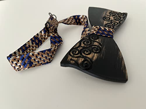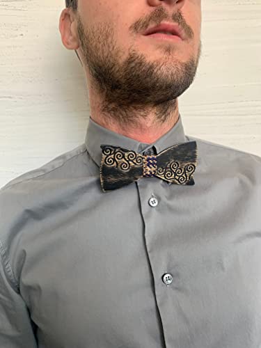 Papillon in legno, colore nero, effetto invecchiato, realizzato a mano, incisione a forma di onde, idea regalo, accessori abbigliamento, cinturino regolabile, alla moda