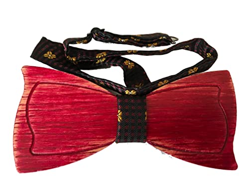Papillon in legno, colore rosso, effetto invecchiato, realizzato a mano, incisione lineare, idea regalo, accessori abbigliamento, cinturino regolabile