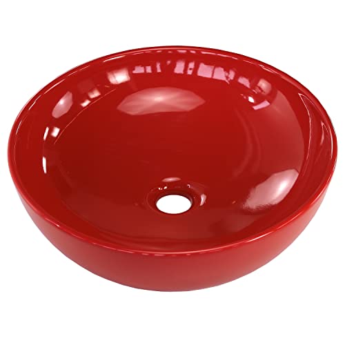 Paplinskimoebel Lavabo da appoggio per bagno e WC per ospiti in ceramica, rosso, nero, grigio, rotondo, 40 cm (rosso)
