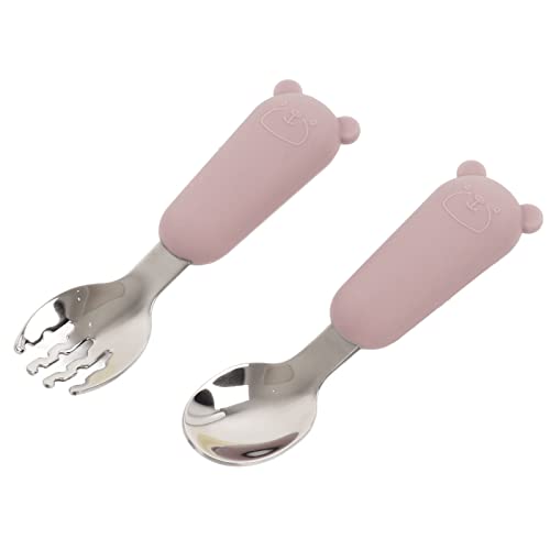 Set per Pappa da 5 Pezzi, Set di Stoviglie per Bambini con Piatto, Ciotola, Tazza per Bere, Cucchiaio, Forchetta, Realizzato in Silicone Alimentare e Perfetto per i Bambini(Rosa Chiaro)