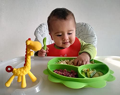 Tutte le mamme adorano vedere i loro bambino/bambina mangiare cibi sani nutrienti. il nostro PIATTO PAPPA per bambini con VENTOSA è anti versamento e ANTISCIVOLO, il cucchiaino svezzamento in silicone, è TERMICO e facile da impugnare, i bavaglino in silicone è personalizzato con una grande tasca aperta raccoglipappa, niente più biancheria o vestiti rovinati, sono stati progettati appositamente per mangiare solo imparando a usare il piatto e il cucchiaio sul seggiolone senza alcun rischio.