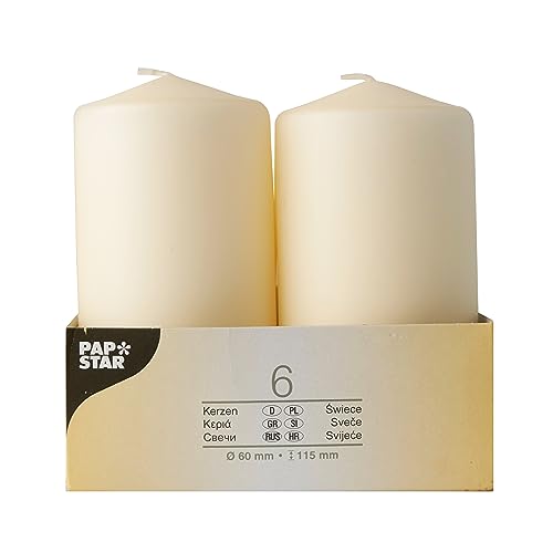 Papstar 17991 - Set di 6 candele, 60 x 115 mm, 6 pezzi, colore Avorio