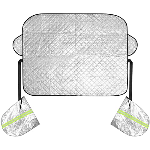 Protezione per tutte le intemperie: il copriparabrezza è universale per quattro stagioni, resistente al gelo, alla neve, al ghiaccio, alla pioggia, ai raggi UV e alla polvere. Funziona come copertura per scudo di neve in inverno e parasole per parabrezza in estate, tenere le foglie sulla copertura in autunno, bloccare la polvere in primavera, è per rendere la vostra auto in buone condizioni.