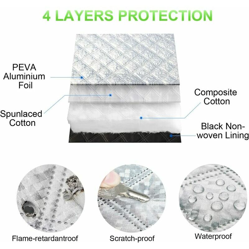 Dimensioni universali - La protezione del parabrezza è grande e copre il parabrezza e gli specchietti esterni. Adatto per la maggior parte dei veicoli. Misura universale 147x120 cm. Nota: non si adatta ai finestrini posteriori. Si prega di misurare le dimensioni del parabrezza della vostra auto e fare riferimento all'immagine delle dimensioni del prodotto prima dell'acquisto (le pieghe del prodotto sono normali). 【Forte magnete】5 magneti cuciti sulla parte anteriore consentono di mantenere la copertura in posizione anche in caso di vento forte. In nessun caso si verificano graffi. 2 alette più sottili possono essere infilate nelle porte per fornire stabilità e sicurezza. Parte anteriore estesa: copre le spazzole del tergicristallo e protegge l'area del tergicristallo dal riempimento con foglie e aghi di pino. Il bordo è ben cucito con una striscia protettiva in modo da non danneggiare il parabrezza. 【Facile da usare】 Il nostro manto nevoso per parabrezza per auto intelligente è