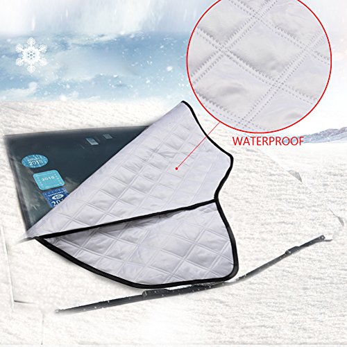Facile da applicare - ci vogliono solo un paio di minuti per aprire il vostro parabrezza Cover tutto il vostro parabrezza anteriore. fissarlo con l' applicazione della bungee cinghie per le ruote. Il manto nevoso lembi vicino all' interno dell' auto porte per garantire una vestibilità sicura al parabrezza per bloccare efficacemente il vento così mai mosche via e previene il furto