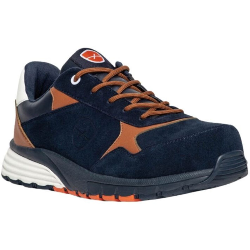 Caratteristiche: Scarpe basse in pelle crosta dallo stile running Fodera in tessuto traspirante per una migliore ventilazione Sottopiede in rete su schiuma EVA, estraibile e anatomico per un comfort ottimale Flessibilità nel movimento del piede grazie al design della suola Suola flessibile in gomma/EVA con protezione normativa di livello S3, antiscivolo, antistatica, buon assorbimento degli urti, resistente agli idrocarburi Suola, resistente al calore fino a 300°C Puntale in composito 200J Ambiti di utilizzo: commercio, distribuzione, logistica Materiali: Tomaia in crosta Rivestimento in tessuto Puntale in composito Suola in rete su schiuma EVA Suola in gomma/EVA Standard: EN ISO 20345:2011 S3 HRO SRC Informazioni aggiuntive: EN 20345 gusci e puntali protettivi resistono a un'energia di 200 Joule. Questa energia corrisponde a un oggetto di 20 kg che cade da un'altezza di un metro. In caso di schiacciamento (altezza di caduta pari a 0), il guscio protettivo 200J resiste ad una forza