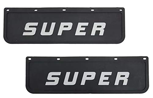 Set di 2 pezzi. Parafango in gomma nera resistente e flessibile con scritta in rilievo.
