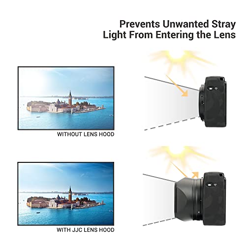 Blocca la luce sporgente: il paraluce a baionetta JJC è progettato per evitare che la luce vagante indesiderata penetri nell'obiettivo estendendo e ombreggiando l'estremità dell'obiettivo.