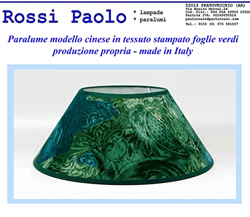 Paralume cappello classico in tessuto stampato verde con foglie - produzione propria - Made in Italy (cinese, cm 50)