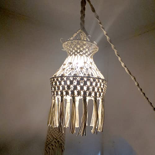 Paralume in corda di cotone stile bohemien per lampada a sospensione paralume in nappa intrecciata a mano lampada da soffitto a soffitto per camera da letto, decorazioni per la casa