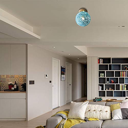 Paralume da soffitto in rattan, in vimini, stile moderno, a forma di sfera, E27, in stile moderno, a forma di palla, colore: blu, 15 cm