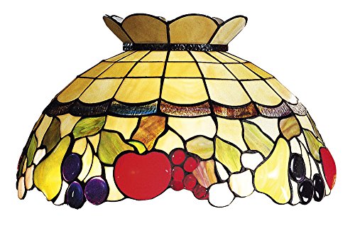 Paralume Tiffany Ambra Con Disegno Di Frutta Colorata: Mele Rosse, Pere, Uva E Prugne - 265 Vetri Originali Tiffany Lavorati A Mano - Misure Ø 55 Cm - Paralume Tiffany Modello Perenz T925