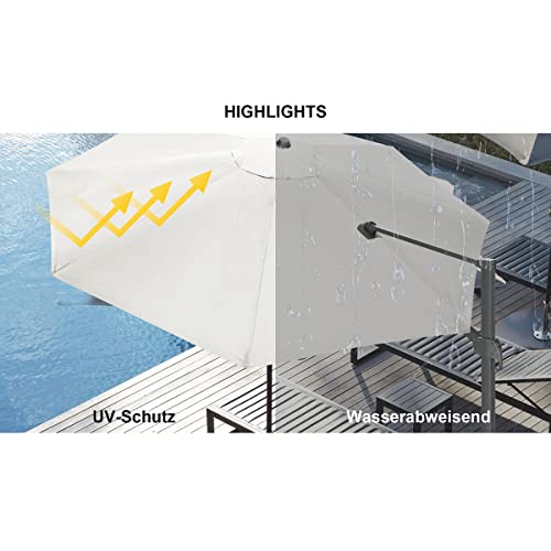 Il rivestimento per l'ombrellone Parapenda è realizzato in poliestere di alta qualità (circa 230g/m²). Il tessuto è idrorepellente e ha una solidità alla luce di 5-6, oltre a una protezione UV di 30+