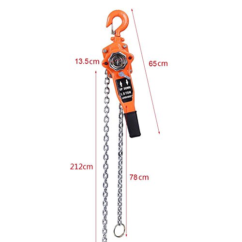 Paranco a Catena, 1,5T 3M Argano a Catena Manuale Paranco Sollevatore con Gancio, Leva di Sollevamento Manuale per Officina, Garage, Fabbriche