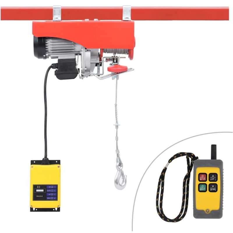 Questo paranco elettrico � di dimensioni compatte e ha un corpo leggero, che lo rende perfetto per l'uso in spazi pi� piccoli, come officine, magazzini o garage. Il suo motore potente e senza manutenzione � l'ideale per un ampio campo di lavori di sollevamento. � costruito per resistere nel tempo, grazie alla sua costruzione robusta e al cambio migliorato. Con il telecomando wireless di facile utilizzo, potete rimanere a terra e prestare lavori pesanti con una mano.Il cavo d'acciaio � progettato per ridurre la torsione. Il paranco elettrico dispone anche di un interruttore di arresto di emergenza, un freno automatico e un dispositivo di protezione termica per garantire la vostra sicurezza. Colore: Rosso Materiale: Acciaio Dimensioni: 43 x 17 x 26 cm (L x P x A) Potenza motore: 1300 W Tensione nominale: 230 V Frequenza nominale: 50 Hz Diametro corda in acciaio: 6 mm Lunghezza cavo d'acciaio: 18 m Velocit� di sollevamento media: singolo cavo 8 m / min, doppio cavo 4 m / min Altezza