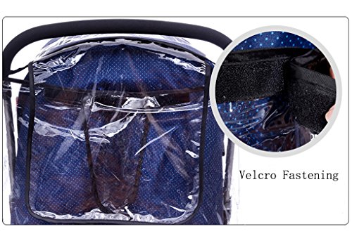 parapioggia che ricopre tutto il passeggino, in PVC trasparente, impermeabile, che offre protezione anche contro il vento.