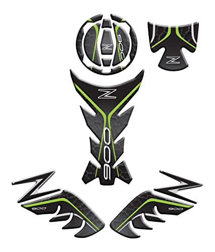 KIT PARASERBATOIO FRONTALE E LATERALE, PROTEZIONE TAPPO E VANO CHIAVE RESINATO ADESIVO EFFETTO 3D, COMPATIBILE CON KAWASAKI Z900 v2 (Verde)