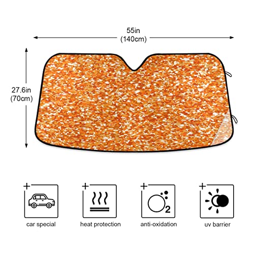 Parasole parasole per auto con glitter, colore arancione, per auto, pieghevole, per proteggere il sole, mantiene il tuo veicolo fresco, 139,7 x 70,1 cm, arancione glitterato