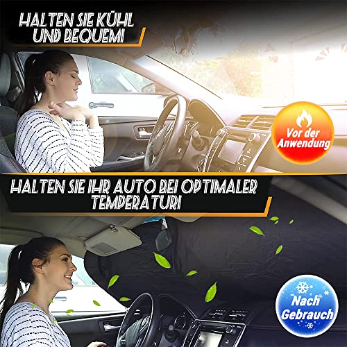 ✅ 【LA MIGLIORE SOLUZIONE CONTRO IL CALORE ESTIVO IN AUTO】: 2 lati con funzione diversa, lato argento riflette i raggi UV e lato nero isola la conduzione del calore. I nostri ombrelloni per auto aiutano a ridurre l'abbagliamento del sole e ridurre il calore, forniscono scudo termico e mantenere il vostro veicolo più fresco. Nella calda estate, non ci sono sedili caldi, nessun volante caldo e niente più lamentele.