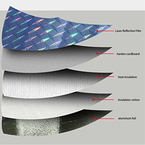 ⭐️ Design riflettente: questo parasole per parabrezza anteriore per auto adotta una faccia esterna unica realizzata in materiale riflettente. Questo design riflettente può aiutare a riflettere fortemente i raggi UV del sole, isolare la conduzione dell'energia termica e ridurre la temperatura all'interno dell'auto. E la parte esterna unica mostra anche il tuo stile unico.