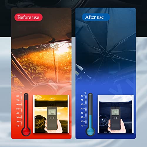 [Efficace protezione dal sole]: protezione solare per auto la superficie è composta da un rivestimento adesivo in titanio argentato di alta qualità, che ha forti proprietà di riflessione della temperatura, può ridurre efficacemente la temperatura dell'auto e prevenire anche l'invecchiamento e i gas tossici, così la vostra auto sembrerà sempre nuova
