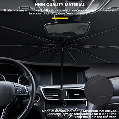 ☂ 【Compatto e portatile】 Questo parasole per finestrino dell'auto pesa solo 450 grammi, devi solo aprire l'ombrellone come un ombrello, quindi può essere fissato sul parabrezza dell'auto. Crolla quando non in uso e si ripone nella custodia allegata. Piega per riporlo, risparmiando spazio.