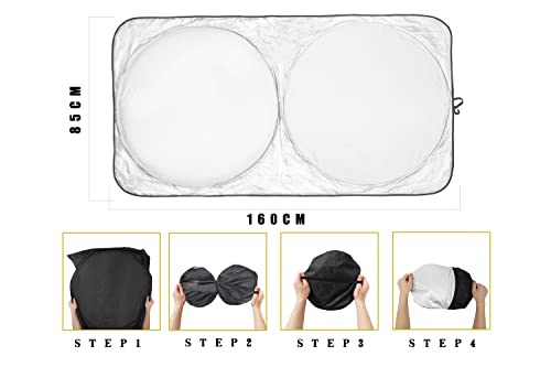 Parasole per Auto Universale: Il nostro parabrezza auto sfumature sole dimensioni è 160 * 85cm, adatto per la maggior parte delle auto, la dimensione è manuale misurato, si prega di misurare il vostro parabrezza auto la dimensione prima di acquistare, trovare la vostra dimensione ottimale.