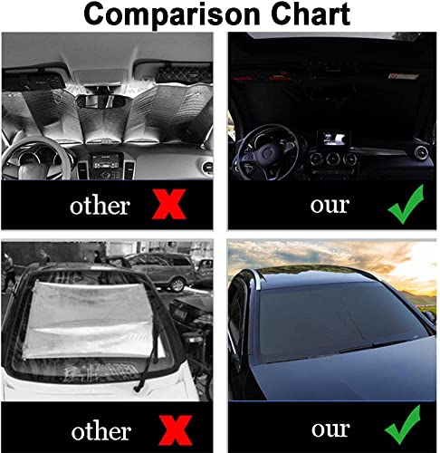 ✔【Materiale Premium】I parasole per parabrezza anteriore dell'auto sono realizzati in tessuto di poliestere di alta qualità, leggero e resistente, non facile da strappare. Può bloccare efficacemente il calore e riflettere la luce solare, mantenere il tuo veicolo fresco.