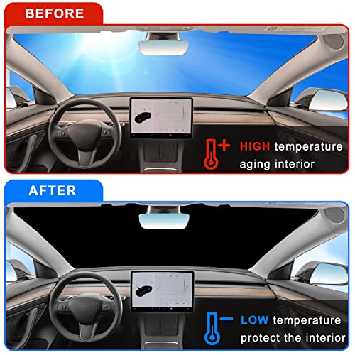 [Progettato per Tesla] - Progettato per adattarsi alle dimensioni del parabrezza Tesla per garantire una perfetta vestibilità. Basta con i parasole universali che non si adattano alle dimensioni del parabrezza.