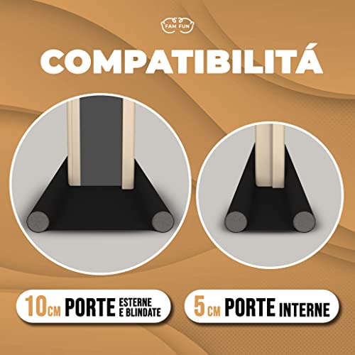 Fam Fun - Paraspifferi Sottoporta per Porte Blindate e Normali Interne da 5 a 13 cm di Spessore - Si Accorcia su Misura - Protegge dal Freddo, Umidità, Acqua e dagli Insetti - Lavabile e Sfoderabile