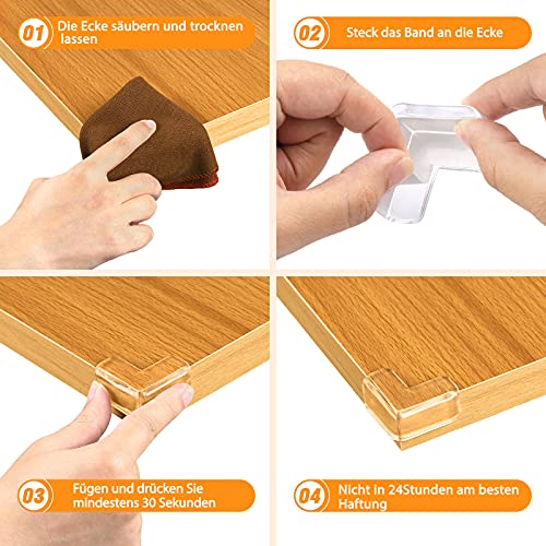 Attenzione/pacchetto include: si prega di rimuovere delicatamente se si ha applicato un tavolo in legno, utilizzare un panno caldo sull'angolo e lasciare che la colla si ammorbidisca. La confezione include 12 protezioni angolari, 48 pezzi (ogni paraspigoli richiede 4 pezzi) di adesivi e 8 pezzi aggiuntivi per l'uso di .