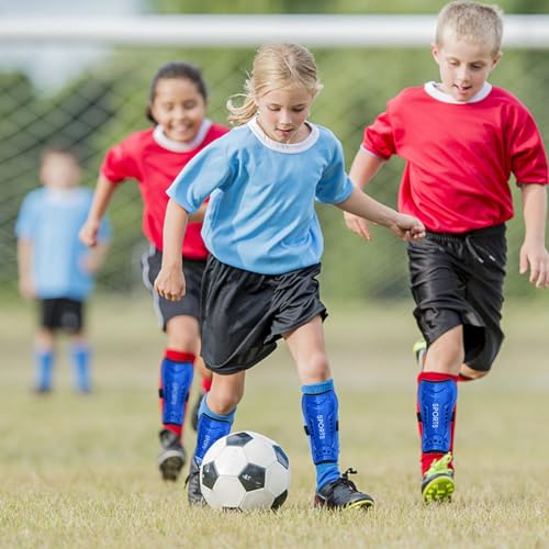 【Contenuto Della Confezione】►Riceverete Parastinchi Calcio Bambino e Calzettoni Calcio Bambino Set, perfetti per i bambini e gli adolescenti che praticano e giocano a calcio o altri sport, forniscono un supporto sufficiente per le gambe e i piedi del bambino, alleviano il dolore e i crampi.